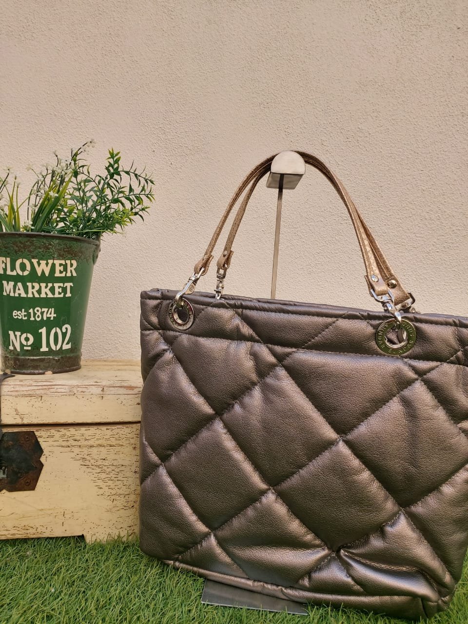 Padrísimas bolsas básicas de rombos estaño con cierre, asas color oro, elige la que mas te guste y pregunta sin compromiso.